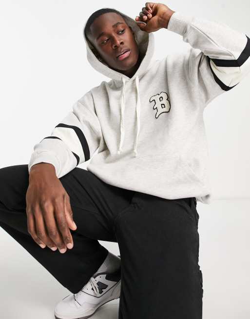 ASOS DESIGN oversized hoodie with varsity boucle badge in grey marl