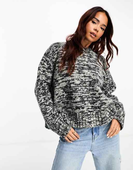 ASOS DESIGN oversized jumper with crew neck and side splits in grey marl