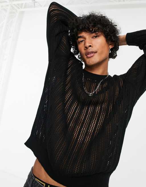 ASOS DESIGN oversized knitted pointelle jumper in black