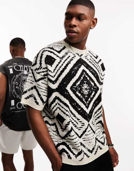 ASOS DESIGN oversized knitted t-shirt with pattern print in black