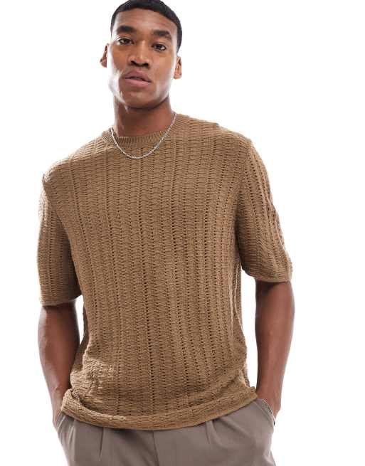 ASOS DESIGN oversized knitted t-shirt with stripe texture in brown