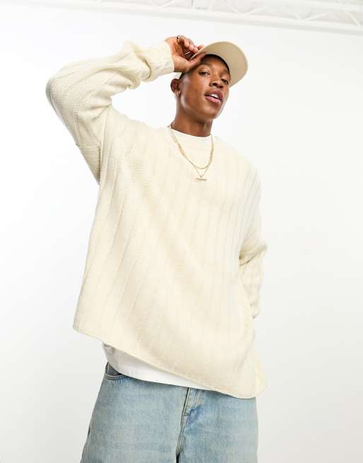 ASOS DESIGN oversized knitted wide rib jumper in oatmeal