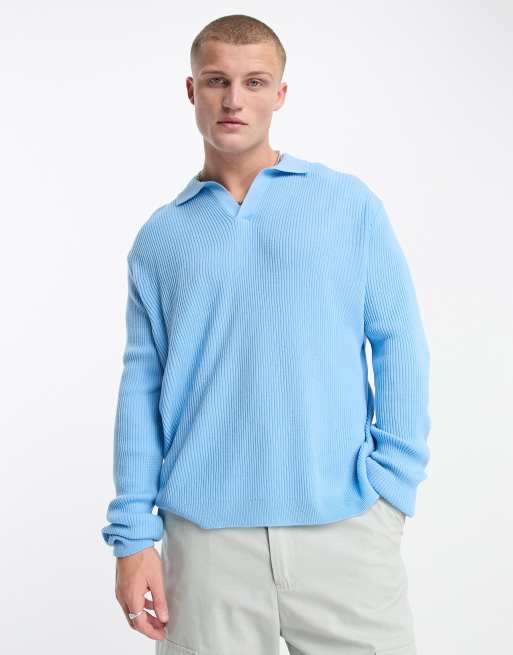 ASOS DESIGN oversized lightweight rib jumper with notch neck in blue