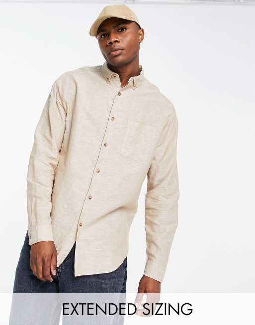 ASOS DESIGN oversized linen shirt in beige