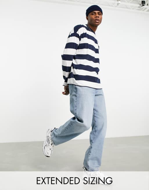 ASOS DESIGN oversized long sleeve stripe t-shirt in navy and white
