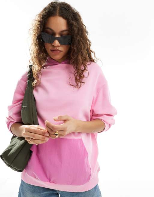 ASOS DESIGN oversized nylon hoodie in pink