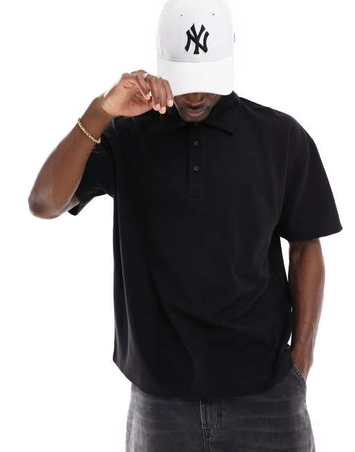 ASOS DESIGN oversized polo in black print