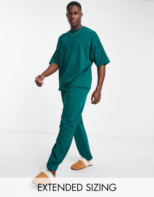 ASOS DESIGN oversized pyjama t-shirt and pants set in dark green jersey