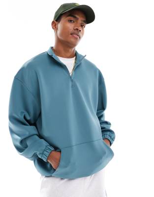 ASOS DESIGN oversized quarter zip scuba sweatshirt in teal