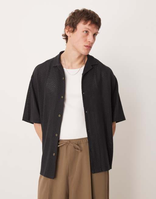 ASOS DESIGN oversized revere open texture shirt in black