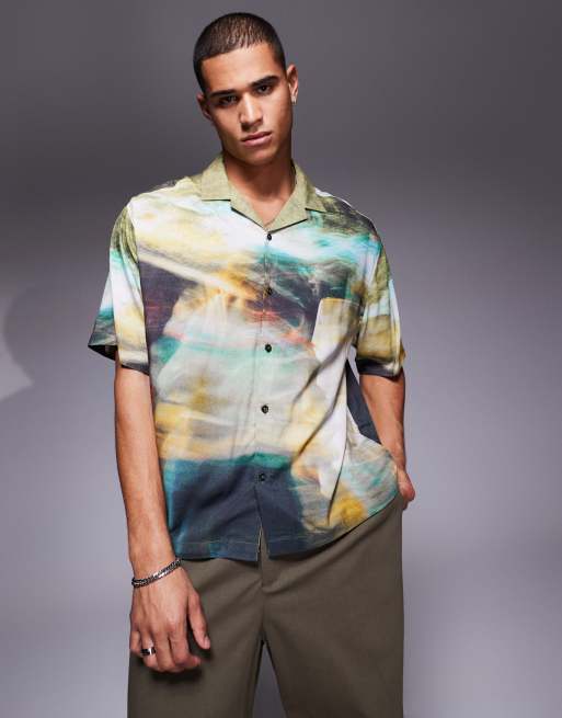 ASOS DESIGN oversized revere shirt with blurred photographic print