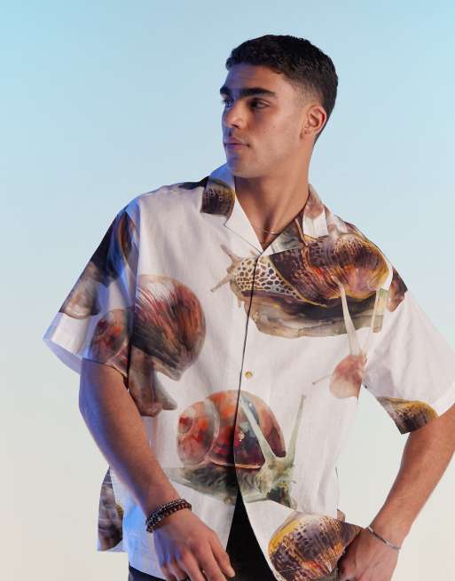 ASOS DESIGN oversized revere shirt with snail print