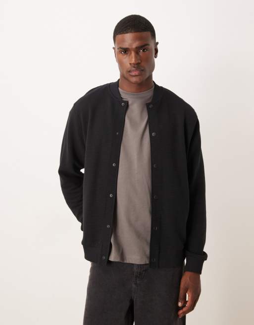 ASOS DESIGN oversized ribbed jersey bomber jacket in black