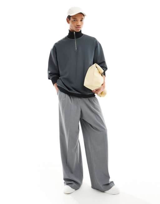 ASOS DESIGN oversized scuba quarter zip funnel neck sweatshirt in grey marl