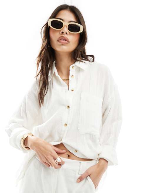 ASOS DESIGN oversized shirt in cheesecloth in white