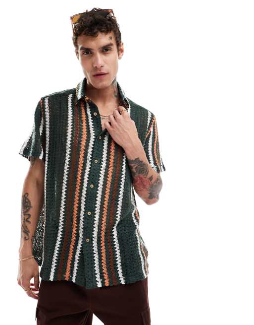 ASOS DESIGN oversized shirt in crochet stripe