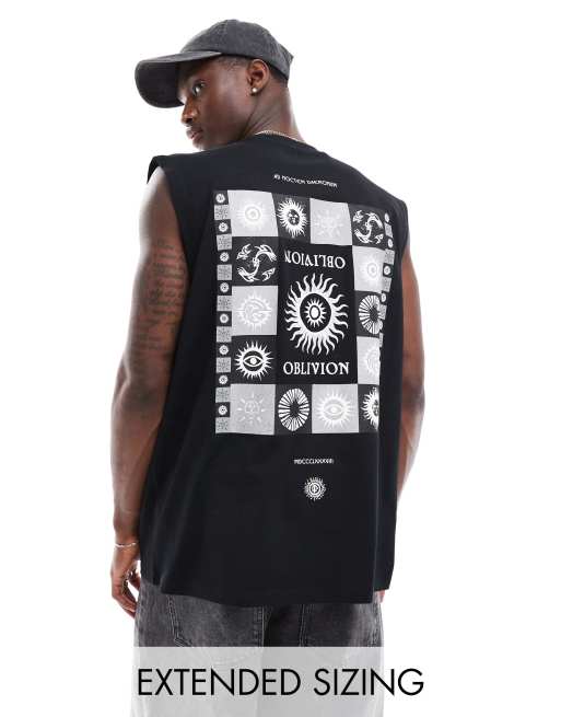 ASOS DESIGN oversized singlet in black with celestial back print