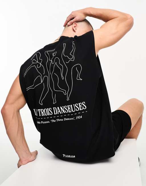 ASOS DESIGN oversized singlet with Picasso prints in black