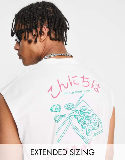 ASOS DESIGN oversized singlet with sushi back print in white