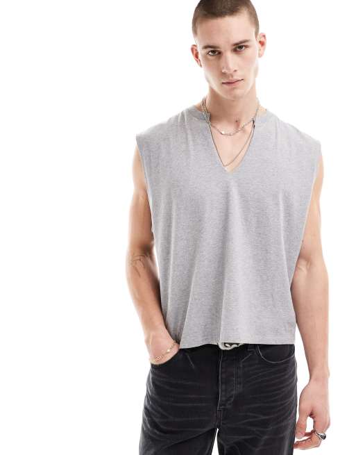 ASOS DESIGN oversized singlet with v-neck in grey marl