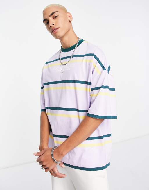ASOS DESIGN oversized stripe t-shirt in lilac with chest print