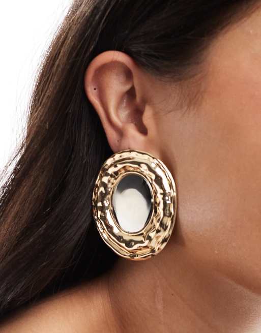 ASOS DESIGN oversized stud earrings with hammered mixed metal design in multi