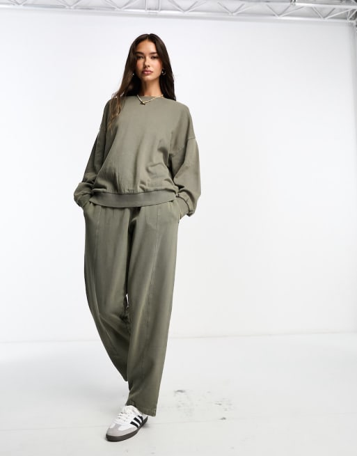 ASOS DESIGN oversized sweatshirt and straight leg trackies in washed khaki