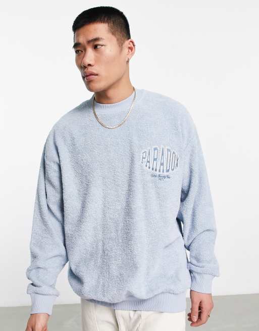 ASOS DESIGN oversized sweatshirt in blue towelling with chest embroidery