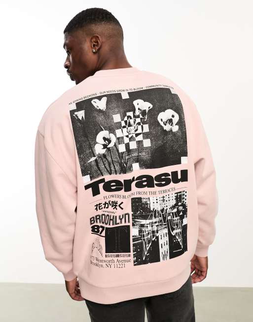 ASOS DESIGN oversized sweatshirt in dusty purple with floral photographic back print
