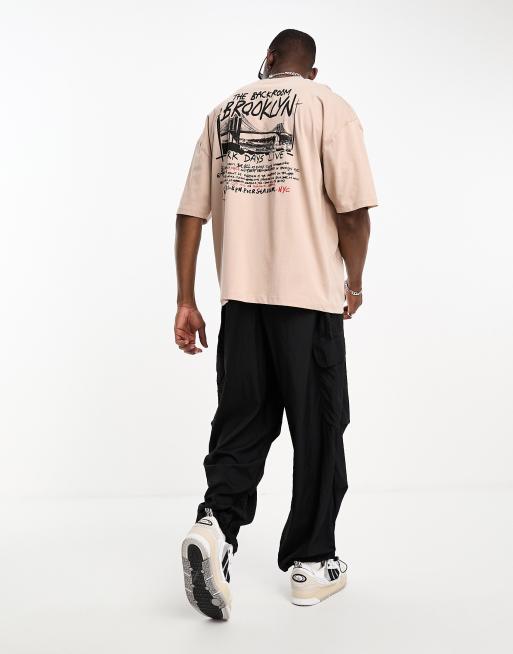 ASOS DESIGN oversized t-shirt in beige with city text back print