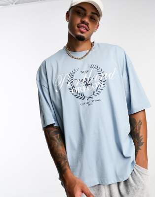 ASOS DESIGN oversized t-shirt in blue with city chest print