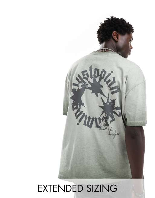 ASOS DESIGN oversized t-shirt in green with grunge back print