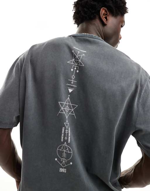 ASOS DESIGN oversized t-shirt in heavyweight 220gsm washed black with symbol spine print