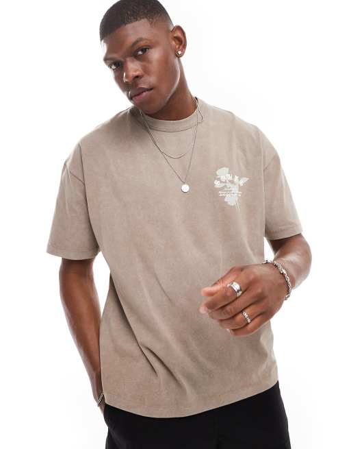 ASOS DESIGN oversized t-shirt in heavyweight 220gsm washed brown with print