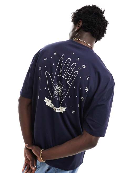 ASOS DESIGN oversized t-shirt in navy with celestial back print