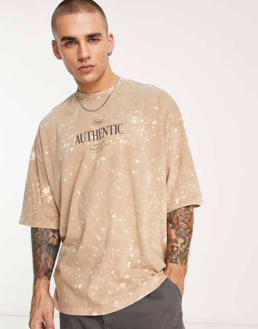 ASOS DESIGN oversized t-shirt in neutral acid wash with text print