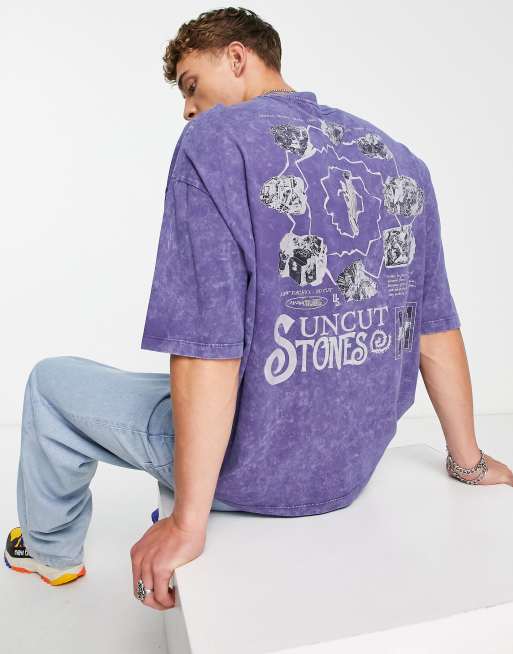 ASOS DESIGN oversized t-shirt in washed blue with crystal back print