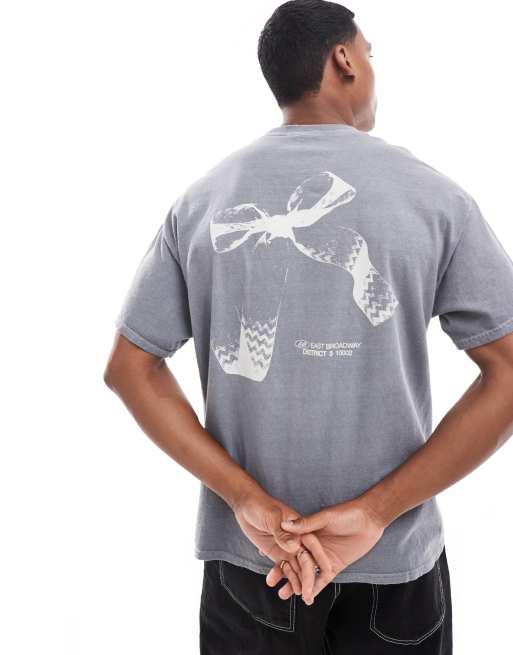 ASOS DESIGN oversized t-shirt in washed grey with bow back print