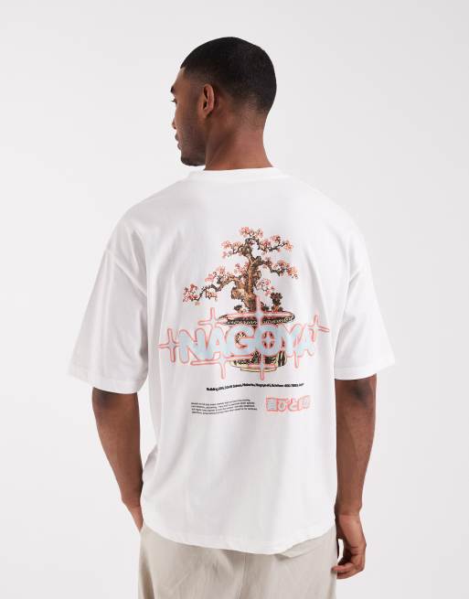 ASOS DESIGN oversized t-shirt with bonsai back graphic in white.
