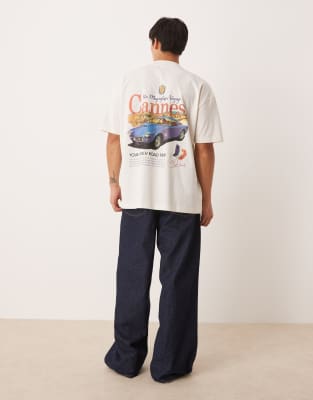 ASOS DESIGN oversized t-shirt with car graphic in cream