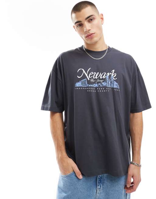 ASOS DESIGN oversized t-shirt with city front print in charcoal