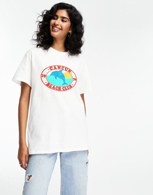ASOS DESIGN oversized t-shirt with dolphin graphic in white