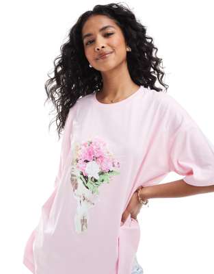 ASOS DESIGN oversized t-shirt with flower bouquet graphic in rose pink