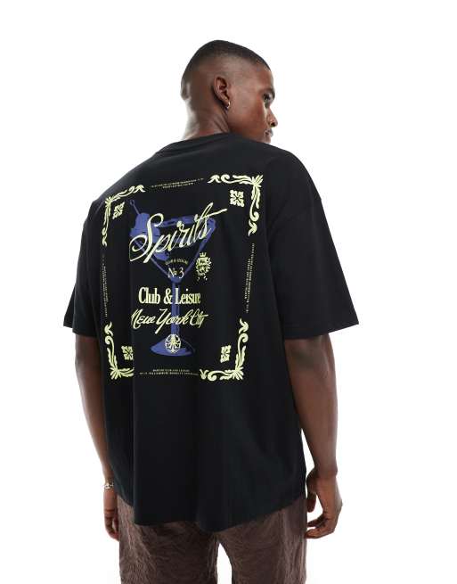 ASOS DESIGN oversized t-shirt with martini graphic in black