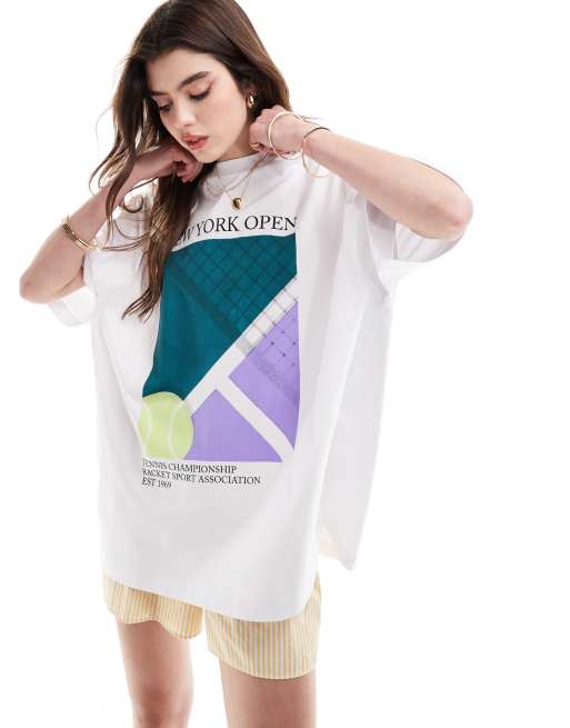ASOS DESIGN oversized t-shirt with new york open tennis graphic in white