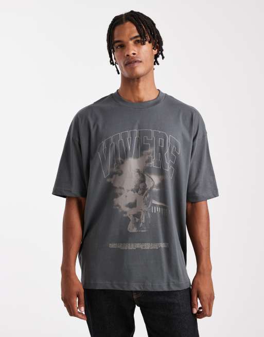ASOS DESIGN oversized t-shirt with renaissance graphic in charcoal