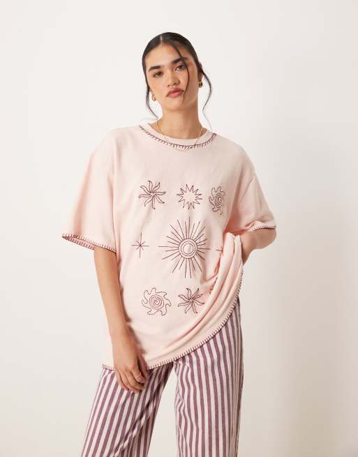 ASOS DESIGN oversized t-shirt with sun embroidery in pink
