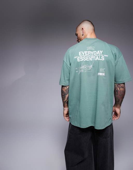 ASOS DESIGN oversized t-shirt with text graphic in green