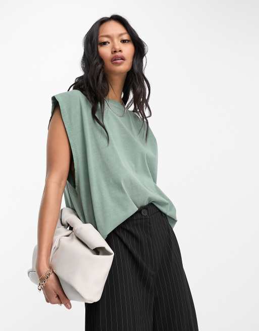 ASOS DESIGN oversized tank with drop armhole in washed khaki