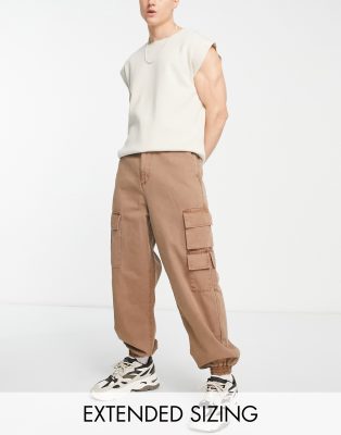ASOS DESIGN oversized tapered cargo pants in brown acid wash